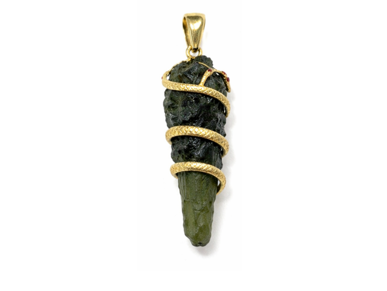 Přívěsek Trinity: Had a český vltavín ve zlatě je důkazem, že šperkařství může být formou alchymie. Spojuje v sobě surovost přírody, preciznost řemesla a hloubku esoterických tradic.