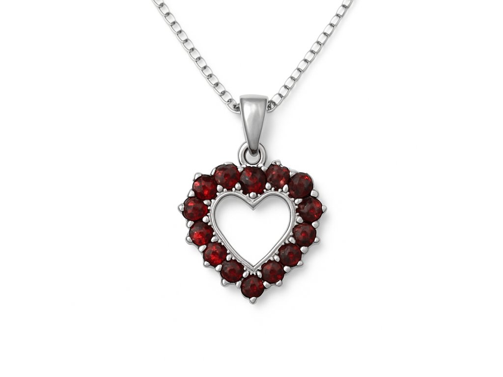 Granátů je mnoho druhů. Ten který je v našich špercích je odrůdy almaldin. Součásti přívěsku je také stříbrný řetízek o délce 45 cm typu benátské kostičky, který je nelámavý a krásně se třpytí a má vzhled bílého zlata.