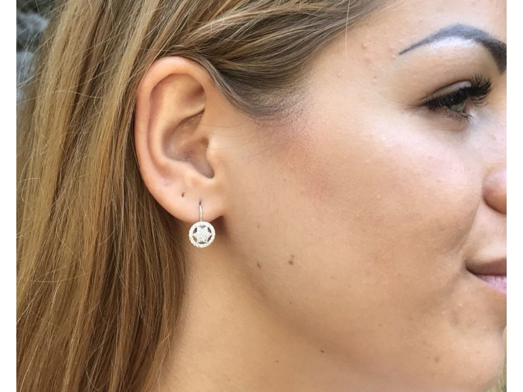 Zářivé náušnice z čirých zirkonů obklopená kroužkem taktéž z mnoha zirkonů zaujme především mladé slečny. Stříbrné náušnice s rhodiem, které zabraňuje černání a udržuje náušnice lesklé, mají praktické klasické zapínání. Mají pohodlné klasické zapínání na klapku a díky přidanému rhodiu nečerní a zachovávají vysoký lesk.