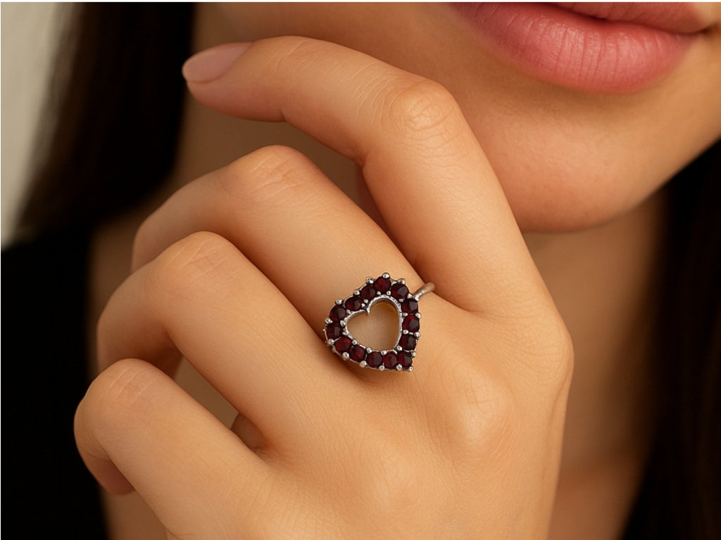 STŘÍBRNÝ PRSTEN S PŘÍRODNÍMI GRANÁTY EVELÍNA Granát je nositelem životní energie, vitality a dobré nálady.