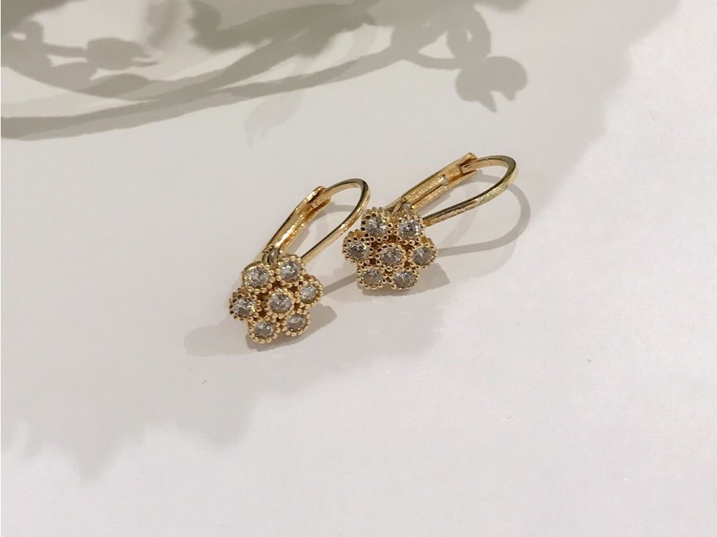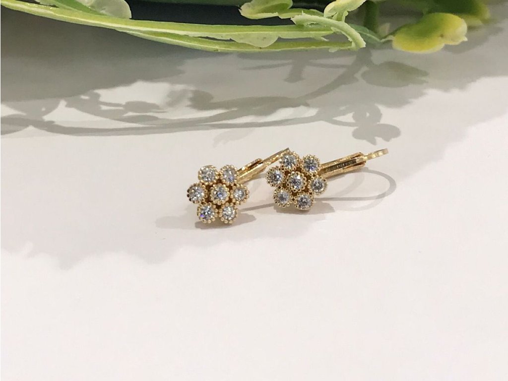 Zlaté náušnice květy se zirkony Jarmila