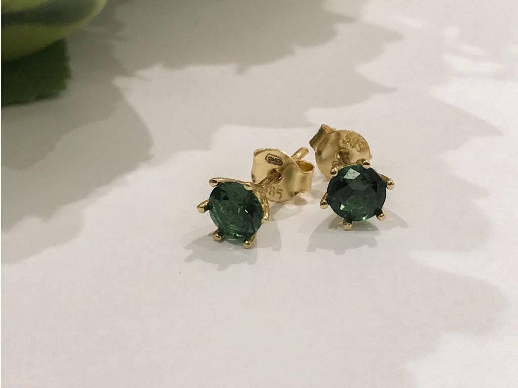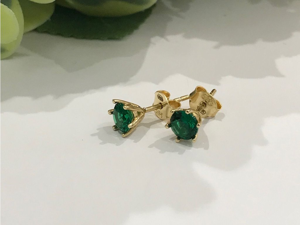 Zlaté náušnice se syntetickým zeleným zirkonem Julie
